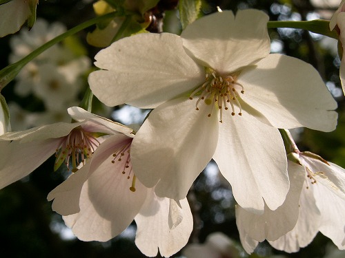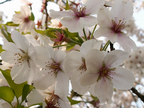 一重で真っ白な花は爽やかで清々しいです。オオシマサクラは、ソメイヨシノなどより若干早く開花時期を迎えます。