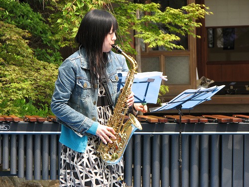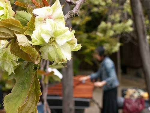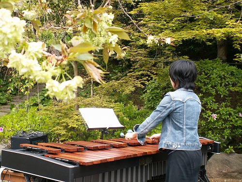 ちょうど緑の桜、御衣黄が満開で、美しい花を眺めながら、素敵な演奏で心地よい時間を過ごすことができました。