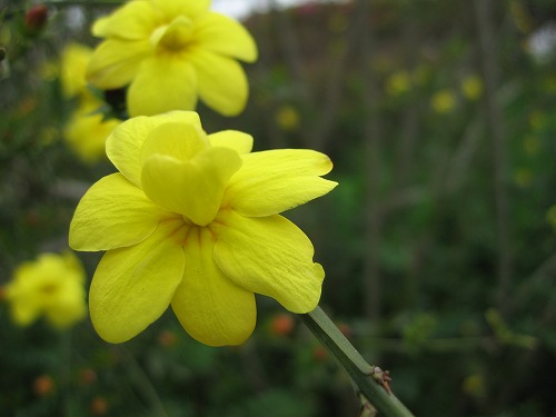 雲南黄梅の写真を撮っていると、品がいいご年配のご夫婦が話しかけてくださいました。以前中国にいらした時にこの花をたくさんご覧になっていたそうで、大変懐かしいとおっしゃっていました。この雲南黄梅より少し小ぶりな黄梅は、別名「迎春花(ゲイシュンカ)」(中国語では「インチュンホァ」)といい、中国では冬が終わり、早春に一番に咲く花であり、春の訪れを喜ぶ大変縁起がいい花だそうです。