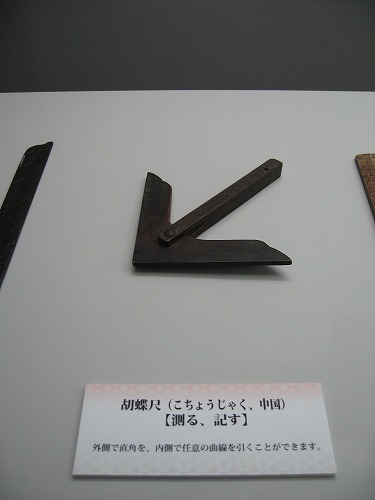 今回の企画展では、森林を豊富に有した日本の風土に合った木造建築文化を支えたさまざまな大工道具を、江戸時代にしようされていた大工道具や明治の名工がつくった大工道具をはじめとして、外国の風土で生み出された大工道具もあわせて比較してご紹介します。(現地案内板より)