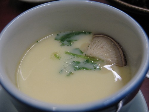 三つ葉、椎茸、かまぼこ、鶏肉、ぎんなんが入っています。