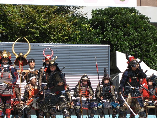 鎧・兜姿の黒田二十四騎が演舞を行なった後、長崎街道黒崎宿を練り歩きます。
