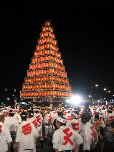 戸畑祇園太鼓戸畑祇園大山笠は、1803年を起源とし、国の重要無形文化財にも指定されている、戸畑区の歴史あるお祭りです。昼は、古式ゆかしい幟大山笠ですが、夜になると飾をはずし、 光のピラミッドと呼ばれる、提灯大山笠に姿を一変させます。戸畑祇園大山笠は、12段×309個の提灯をピラミッド状に飾った「提灯大山笠」です。鉦や太鼓のお囃子と、「ヨイトサ、ヨイトサ」の掛け声にあわせ、勇壮でダイナミックな光の絵巻を繰り広げます。