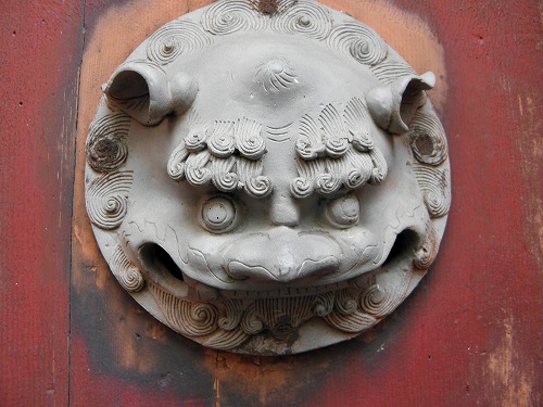 饕餮は下顎が無く、牙があり、曲がった角、大きな目、大きな鼻、大きな耳、下顎が無い中国神話の怪物です。饕餮は非常に貪欲で、目についたものはなんでも食べると言われています。邪悪な心も食べてくれると言われています。饕餮の下を通れば、清らかな心でお参りできると言われています。