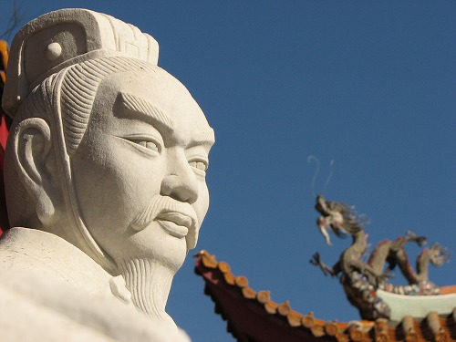 孔子廟は、儒教の創始者、孔子の遺品を収めて祀ったのが始まりです。この長崎孔子廟は、唯一、中国人によって海外に建てられた廟堂です。孔子像や72賢人像などは全て中国から取り寄せたものです。