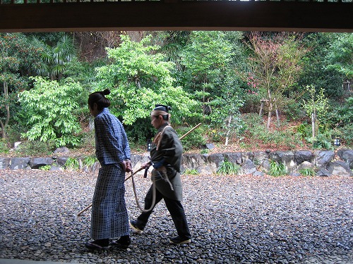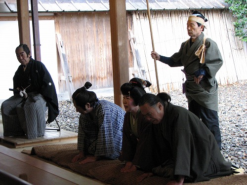 時代劇の「遠山の金さん」や「大岡越前」でお馴染みの、御奉行様が裁きを行う場所を御白洲(おしらす)といい、現在の裁判所にあたります。長崎歴史文化博物館に復元された長崎奉行所の御白洲では、国から重要文化財に指定されている数々の犯科帳をもとに、約15分の寸劇で歴史的な事件を紹介しています。(パンフレットより)