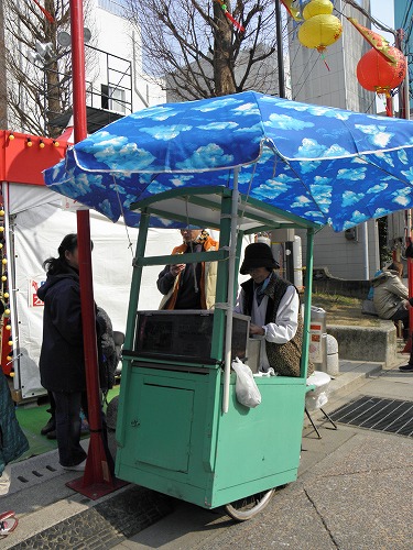 中央公園でちりんちりんアイスを販売していました。移動販売の屋台では、小さなヘラを使って、あっという間にバラの形のアイスを作ってくれます。