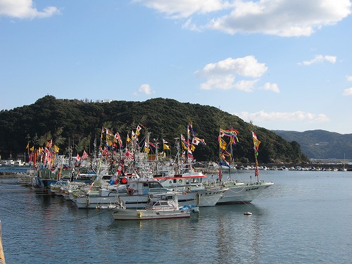 式見漁港 新長崎漁港の南側、国道202号沿いに位置する小さな漁港です。 所在地:長崎県長崎市式見漁港 長崎の漁港では、お正月の三日間、船のマストには竹竿と日章旗と大漁旗を飾り、今年一年の海上安全祈願と船霊様(ふなだまさま)祀りをする、「船祝い」という行事があるそうです。 海の仕事は自然が相手だし、危険がつきものなので、こうして、お正月にきちんと安全祈願をするそうです。 外海地区から長崎市内へと移動中に大漁旗が目に止まったので、ちょこっとだけ立ち寄ってみました。 長崎一覧 長崎 平戸 佐世保 島原 雲仙・小浜