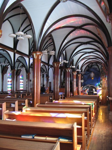 三廊式で、こうもり天井の聖堂内は、荘厳で、自ずと厳かな気分になります。