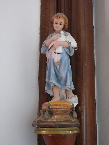 シャコ貝で作った聖水入は、海辺の教会ならではのものです。