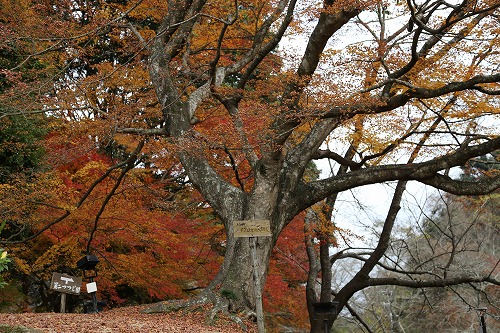イロハカエデ、ヤマモミジ、オオモミジ、エンコウカエデ、カエデや公孫樹、サクラの葉が色づきます。そそり立つ奇岩と紅葉した木々のコントラストが見事な景観を作りだします。15万坪というと、東京ドーム約10個分です。広大な庭や木々や山の美しい景色を眺めながら、のんびり散策するのはとても気持ちがいいです。