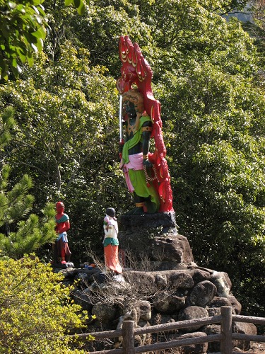落差11メートルの二つの滝の間に不動明王が立っています。
