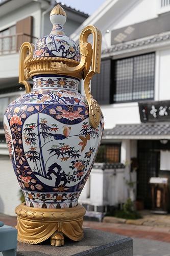 「古伊万里色絵菊梅文壺(燭台仕立)」の高さ66cmほどですが、この作品は、現代の技術で大きく作りました。(現地案内板より)
