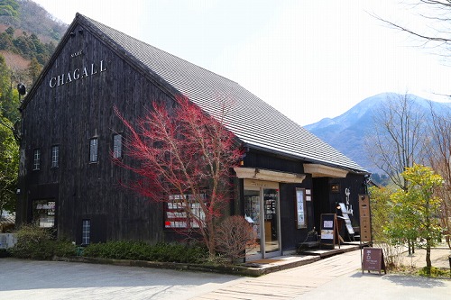 おしゃれなカフェとショップも併設されています。ショップでは、シャガールのポストカードや小物の他、湯布院で活躍するアーティストの作品、雑貨、オリジナル商品、セレクト雑貨なども販売しています。